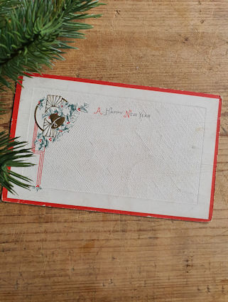 Mooie eenvoudige oude Nieuwjaarskaart met rode rand