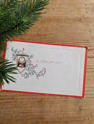 Mooie eenvoudige oude Nieuwjaarskaart met Klok