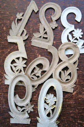Afkomstig uit 1900-1920 deze prachtige unieke gouden geverfde kartonnen (papier machee, geperst papier) cijfers. Art.nr OP141