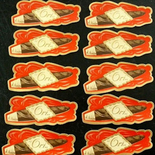 Zeldzaam mooi formaat deze middelgrote rood omrande etiketten Art.nr OP128