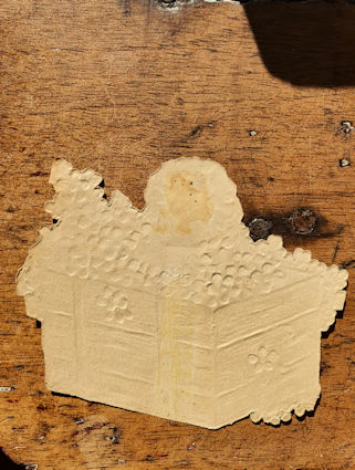 Unieke, hele oude mooie gegomde Dennison plaatjes met religieus tafereeltje