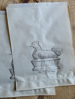 Hele mooie oude winkelzakjes met Kip vorm. Art.nr PS109
